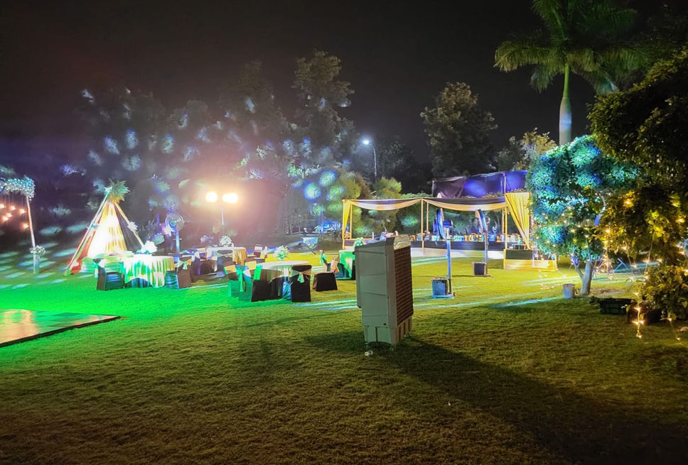 Dimple Farm is a picturesque and versatile outdoor event venue situated in the heart of Delhi. Nestled within a sprawling 2-acre expanse of lush greenery, Dimple Farm offers an idyllic setting for a wide range of occasions. From intimate gatherings to grand celebrations, this venue provides an enchanting backdrop that combines nature's beauty with modern amenities. Whether it's a wedding, engagement, birthday party, corporate event, or even a product photoshoot, Dimple Farm ensures that every event is imbued with charm, comfort, and luxury.